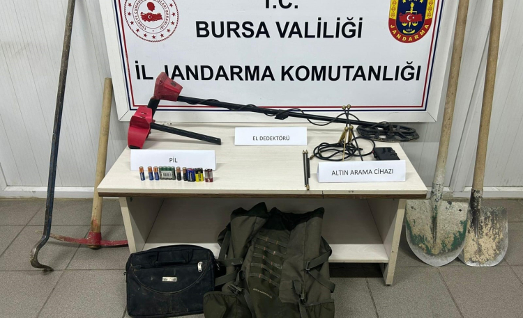 Bursa’nın İnegöl ilçesinde sit alanında izinsiz kazı yapan üç kişi, jandarma ekiplerinin dikkati sayesinde suçüstü yakalandı. Olay yerinde çeşitli define arama ekipmanları ele geçirildi.