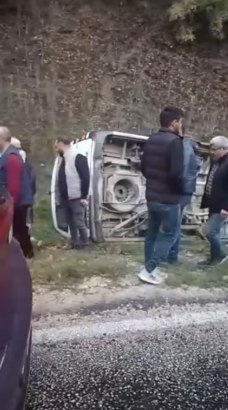 Bursa’da kontrolden çıkan yolcu minibüsü devrildi! Yaralılar var