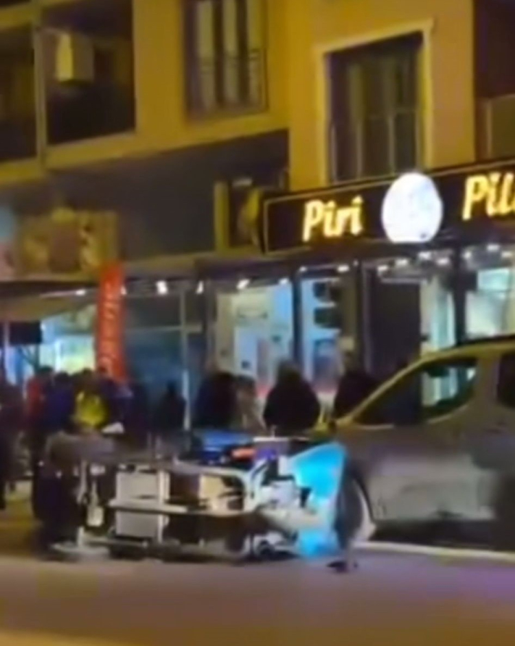 Bursa'nın Gürsu ilçesinde bir ticari araç sürücüsü, makas attığı sırada karton toplamak için kullanılan elektrikli araca çarptı. Makas atan sürücüye çevredekiler tepki gösterdi.