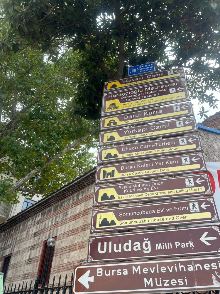 Bursa’nın tarihi ve manevi mirası, bu tabela ile tek bir rotada birleşti. Şehrin dört bir yanına yayılan camiler, türbeler ve medreseler, ziyaretçileri kültürel ve ruhani bir yolculuğa çıkarıyor.