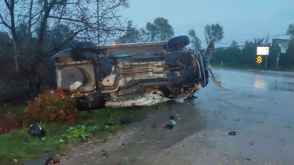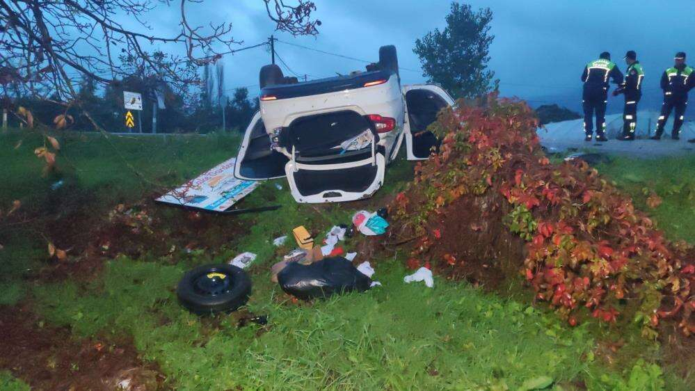 Yol dışında yaklaşık 60 metre sürüklenen otomobil takla atarak ters döndü. Kazayı gören vatandaşlar durumu sağlık ve itfaiye ekiplerine bildirdi. Kaza yerine gelen itfaiye ekipleri otomobilde bulunan sürücüyü yaralı olarak araçtan çıkardı. İlk müdahalesi burada yapılan otomobil sürücüsü Hakan Ö. Ambulansla Orhangazi Devlet hastanesine kaldırılarak burada tedavi altına alındı. Jandarma ekipleri kaza ile ilgili tahkikat başlattı.