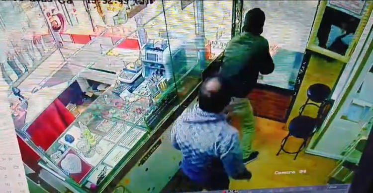 Olayın güvenlik kamerası görüntüleri, soyguncunun ne kadar paniklediğini ve kuyumcunun soyguncuya nasıl vurmaya başladığını anbean kaydetti.