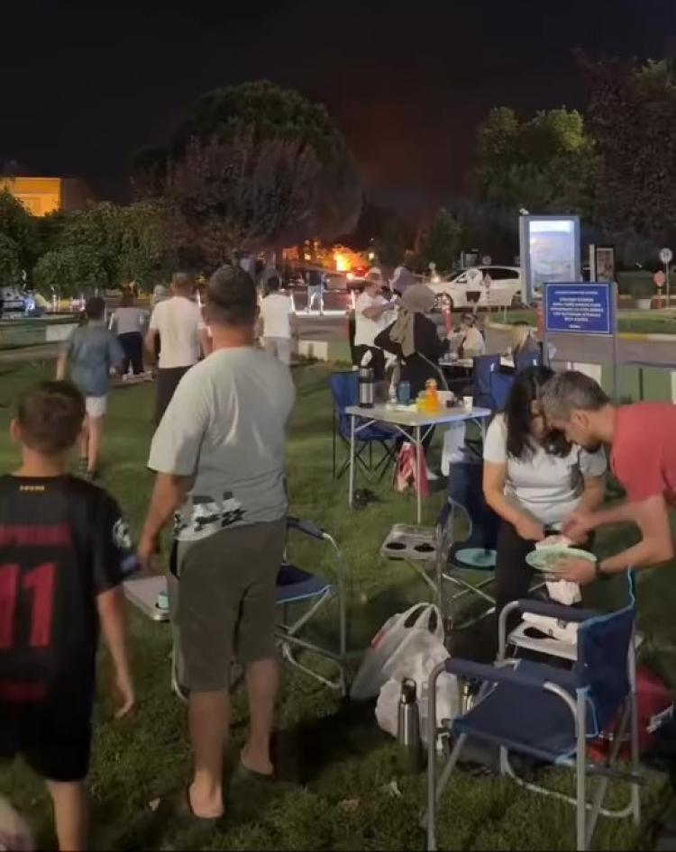 Parkta çimler üzerinde oturup serinlemeye çalışan vatandaşlar, bir anda park alanındaki araçların olduğu bölgede yükselen dumanları fark etti. Kısa süre içinde otomobillerin arasından alevler yükseldi. Yangını gören vatandaşlar, hızlıca güvenli bölgelere yönelirken ortalık kısa süreliğine panik havasına büründü.
