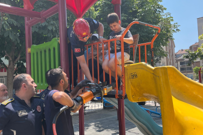 Karne heyecanıyla dışarı çıkan Y.B., parkta arkadaşlarıyla oynarken kaydırağın yanında bulunan metal korkuluklara dizlerini sıkıştırdı. Sıkıştığı yerden çıkamayan çocuk panik halinde çığlık atınca çevredeki vatandaşlar hemen yardımına koştu.