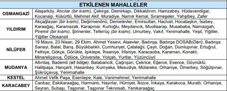 BURSA'DA NERELERDE SU KESİNTİSİ YAPILACAK?