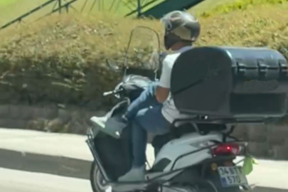 Edinilen bilgiye göre, trafikte bir motokurye bacak bacak üstüne atarak seyretti. Kısa bir süre bu şekilde giden motokuryeyi gören diğer sürücüler şaştı kaldı.