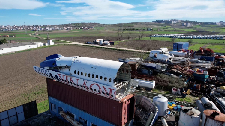 Bursa’da bir geri dönüşüm tesisinin sahasında sergilenen Boeing 747 model yolcu uçağı, alışılmadık görüntüsüyle çevrede merak uyandırıyor. Yaklaşık 10 yıl önce İstanbul’dan restoran yapılma amacıyla kente getirilen ancak projenin hayata geçmemesi üzerine hurdaya ayrılan uçak, 4 büyük parça halinde yeni yatırımcısını bekliyor.
