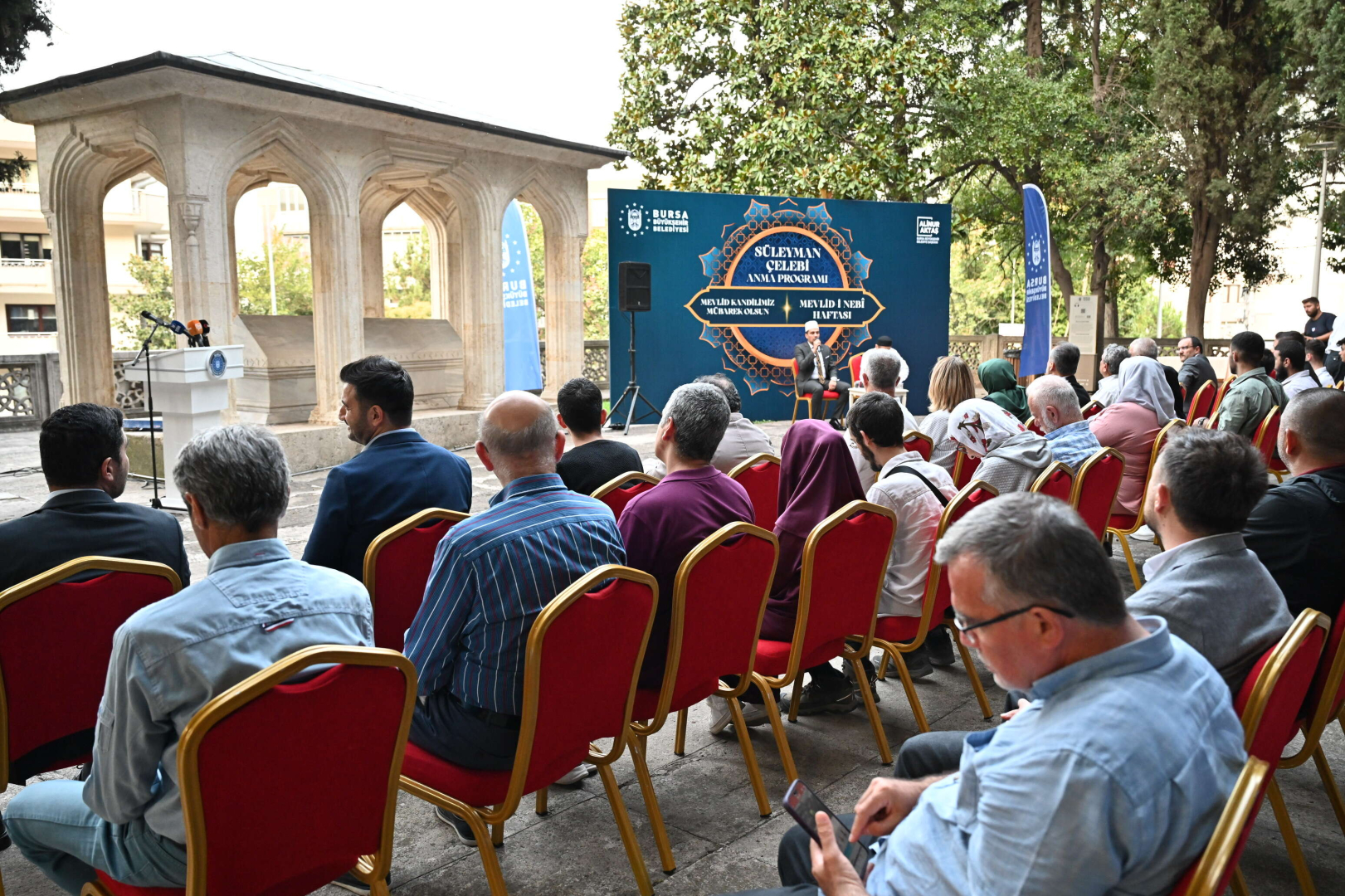 Mevlid-i Nebi Haftası, Bursa’da da Büyükşehir Belediyesi tarafından düzenlenen farklı etkinliklerle kutlanıyor. Etkinliklerin ilk durağı, Mevlid’in yazarı Süleyman Çelebi’nin Çekirge Caddesi’ndeki türbesi oldu. Süleyman Çelebi’yi anma töreni, Süleyman Çelebi Camii Hatibi Hıfsı Çakır ve Mihraplı Camii Hatibi Hakan Çavdar’ın kuran tilavetiyle başladı. Daha sonra kürsüye gelen Büyükşehir Belediye Başkanı Alinur Aktaş, törene katılanların Mevlid Kandilini kutlayarak sözlerine başladı.