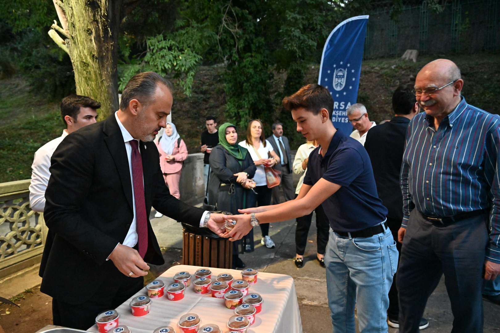 Konuşmaların ardından anma törenine katılan vatandaşlara helva ikram eden Büyükşehir Belediye Başkanı Alinur Aktaş, gece de Ulu Cami’de düzenlenen Mevlid Kandili programına katıldı. Vatandaşlar Ulu Cami başta olmak üzere özellikle selatin camilere akın ederken, Bursa Büyükşehir Belediyesi tarafından vatandaşlara cami çıkışlarında helva ikram edildi. Bursa Büyükşehir Belediye Başkanı Alinur Aktaş da beraberindeki Bursa Valisi Mahmut Demirtaş, Bursa Milletvekili Mustafa Yavuz ve AK Parti İl Başkanı Davut Gürkan ile Orhangazi Parkı’nda vatandaşlara helva ikram etti.