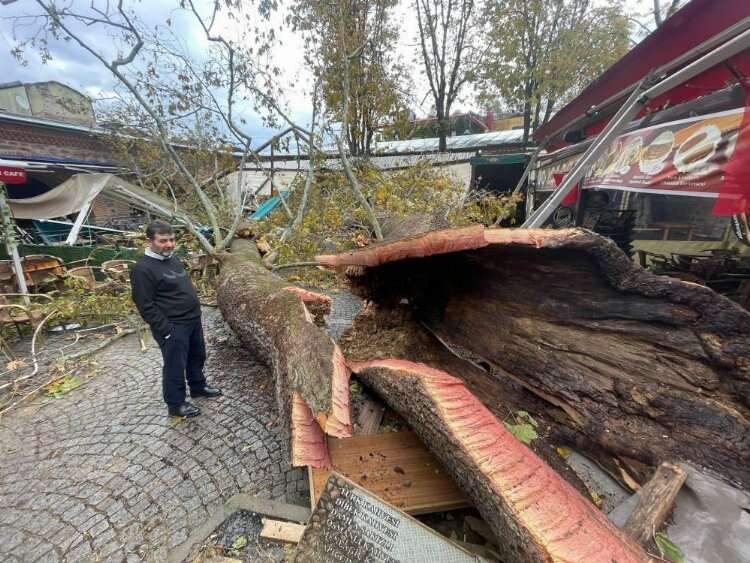 Kafelerin bulunduğu ve közde kahve ile meşhur olan İç Kozahan'daki devasa çınar saatteki hızı 100 kilometreye ulaşan fırtınaya dayanamadı. Gece yarısı büyük bir gürültüyle yıkılan dev çınar ağacı, sabah gelen esnaflar tarafından parçalara ayrılmış halde bulundu.