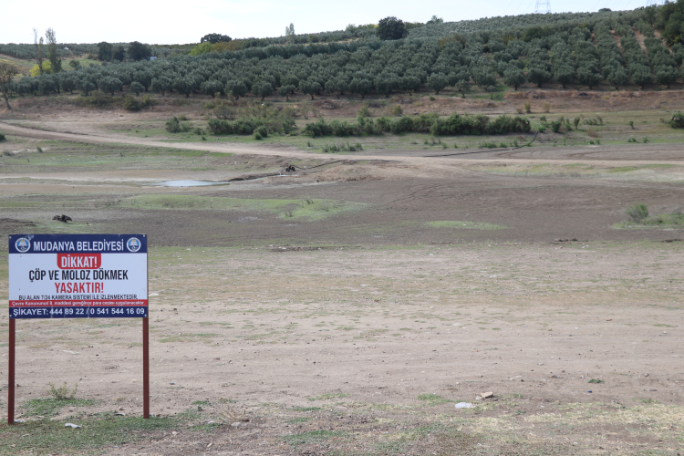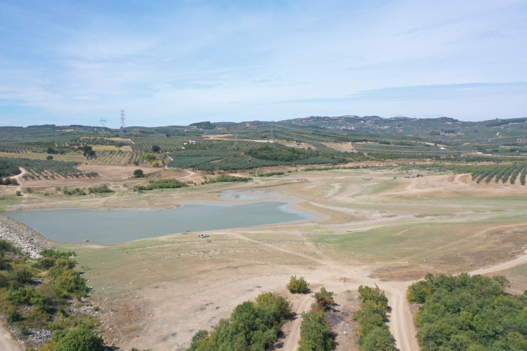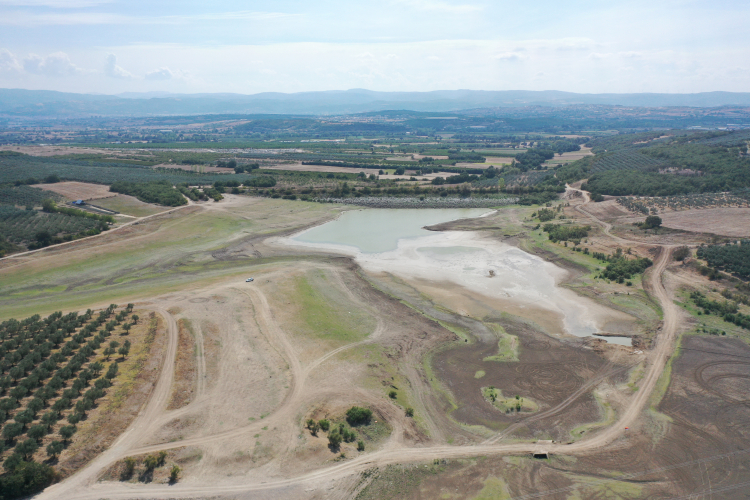 Bursa'nın Mudanya ilçesinde, Avrupa Birliği'nden coğrafi işaret onayı almış tarımsal ürünlerin yetiştirildiği alanların sulanmasında kullanılan Ülküköy Göleti, su seviyesinin metresel olarak düşmesiyle dikkat çekiyor.