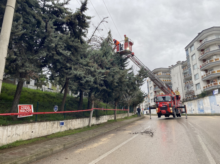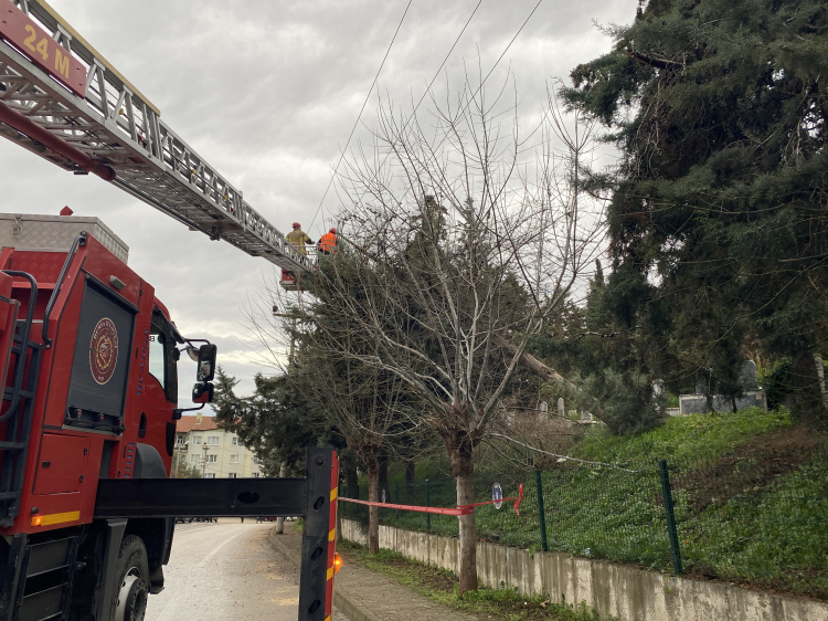 İhbar üzerine bölgeye Uludağ Elektrik ekipleri ile Mudanya İtfaiyesi sevk edildi. Elektrik akımına bağlı risklerin önüne geçmek için gerekli güvenlik önlemleri alan ekipler, ağacı kontrollü bir şekilde keserek güvenli alana taşıdı.