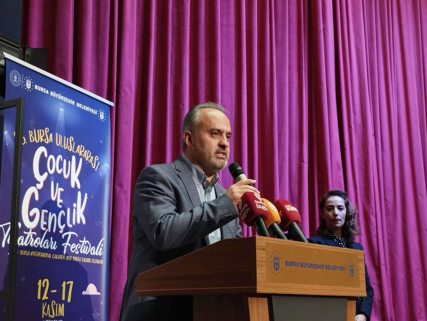 Büyükşehir Belediye Başkanı Alinur Aktaş, Bursa’nın kadim medeniyetimizin izlerini taşıyan çok özel bir şehir olduğunu söyledi. Bursa’da kültürle iç içe olmanın ve kültürle sosyalleşmenin olmazsa olmazları olduğunu belirten Başkan Alinur Aktaş, altyapıdan ulaşıma kadar birçok konuda çalışmalar yürüttüklerini ancak tarihi ve kültürel çalışmalar ayrı önem verdiklerinin altını çizdi. Festival sayesinde çocukların ve gençlerin ara tatili iyi değerlendirme fırsatı bulacağını ifade eden Başkan Aktaş, “Çocuklarımız ileride mühendis, doktor, öğretmen olabilir. Ama onları yetiştirirken en az bir spor dalı ve en az bir sanat dalıyla ilgilenmelerini sağlayalım. BKSTV marifetiyle 17 Kasım’a kadar sürecek olan festivalimizde İran’dan 2, İspanya ve Kazakistan’dan olmak üzere 4’ü yabancı 14 grup yer alıyor. Bursa’nın 7 ayrı merkezinde 30 gösterinin yanı sıra atölye ve paneller düzenlenecek. Dolu dolu etkinliklerin gerçekleştirileceği festivalimiz, bu yıl da çocuklarımıza ve gençlerimize unutulmaz anlar yaşatacak. Festivale katkı sunan sponsorlarımıza da teşekkür ediyorum. Tiyatronun en güzel örneklerinin sergileneceği festivalimizin gençlerimize ve çocuklarımıza ilham olmasını temenni ediyorum” dedi.
