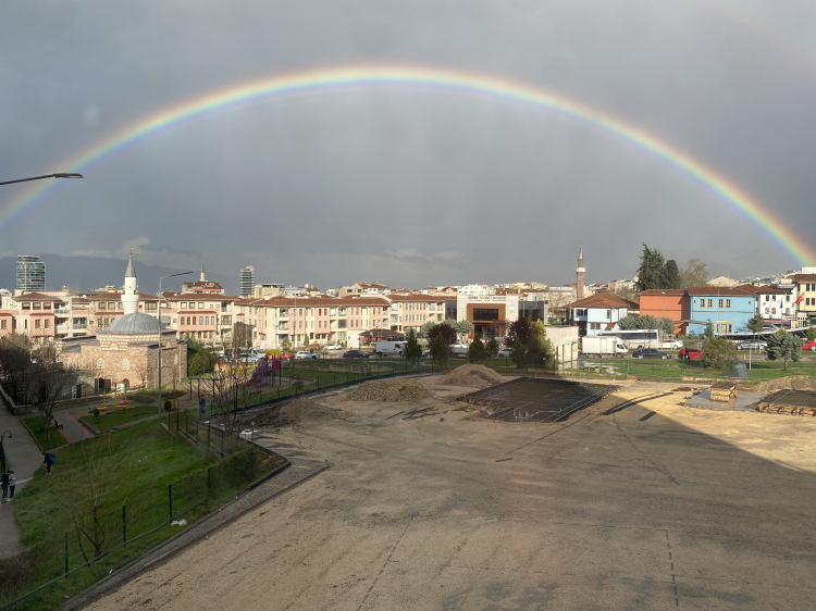 Bursa’da öğleden sonra etkili olan yağmurun ardından gökyüzünde beliren gökkuşağı, şehrin birçok noktasından görüldü ve vatandaşlara görsel bir şölen sundu.