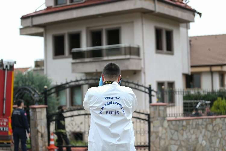 Çevrede bulunan bir güvenlik kamerasının kayıtlarında, patlamanın ardından villadan duman yükseldiği, bahçıvanın alev alan kıyafetleriyle kendini sokağa attığı, giysilerini çıkarmasının ardından ambulansa alındığı görülüyor.