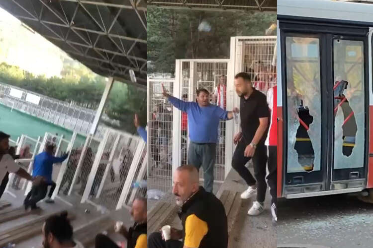 Tribünde başlayan kavga sahanın dışına da taştı. Erikligücü kulübünün tarafları hırsını almayınca Gemlik’ten gelen taraftarları için tahsis edilen otobüsleri taşladı. Polis ekiplerinin olay yerine müdahale etmesiyle taraflar dağıtılırken, tribünlerin birbirlerine su şişeleri ve taşlarla saldırdığı anlar kameraya anbean yansıdı.