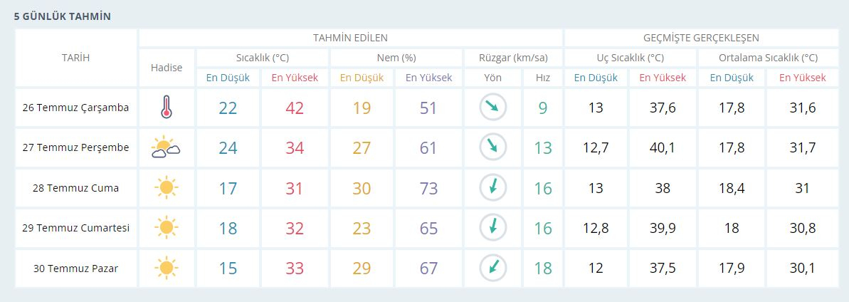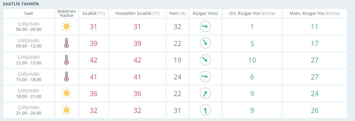 Bursa'da bugün beklenen en yüksek sıcaklığın saat 12.00 ila 15.00 arasında 42, 15.00-18.00 arasında ise 41 olacağı tahmin ediliyor.