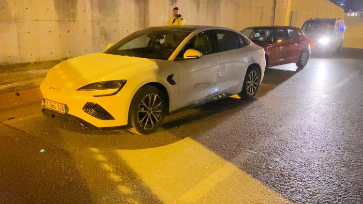 Çarpmanın şiddetiyle savrulan Mehmet M.’nin aracı takla atarak yol ortasında ters durdu. Araçta bulunan sürücü ve yolcu Serdar T. (20) kazadan yaralı olarak kurtuldu.