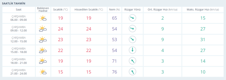 29 Mayıs Perşembe: Parçalı bulutlu. En düşük sıcaklık 13, en yüksek sıcaklık 24 derece olacak.