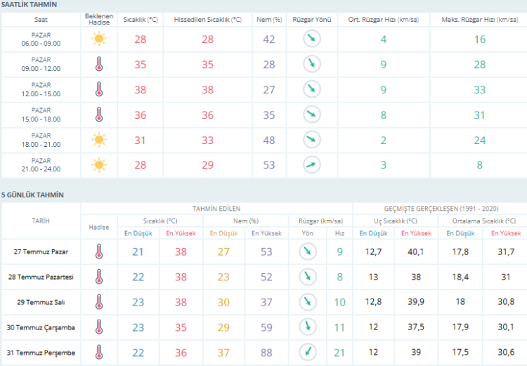 Sıcaklık ve rüzgar hızının nispeten yüksek olduğu bu gün, nem oranı ortalamalarda seyrediyor.
