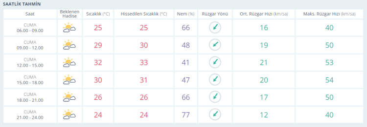 1 Ağustos Cuma: Parçalı bulutlu. En düşük sıcaklık 20, en yüksek sıcaklık 32 derece olacak.
