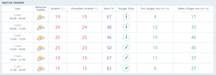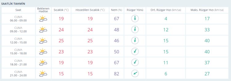 30 Mayıs Cuma: Parçalı bulutlu. En düşük sıcaklık 13, en yüksek sıcaklık 25 derece olacak.