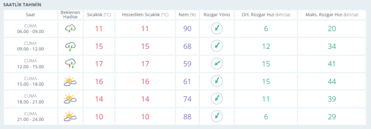 2 Mayıs Cuma: Gökgürültülü sağanak yağışlı. En düşük sıcaklık 9, en yüksek sıcaklık 19 derece olacak.