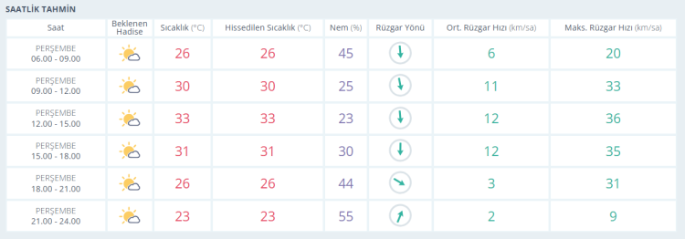 21 Haziran Cumartesi: Parçalı bulutlu. En düşük sıcaklık 17, en yüksek sıcaklık 33 derece olacak.