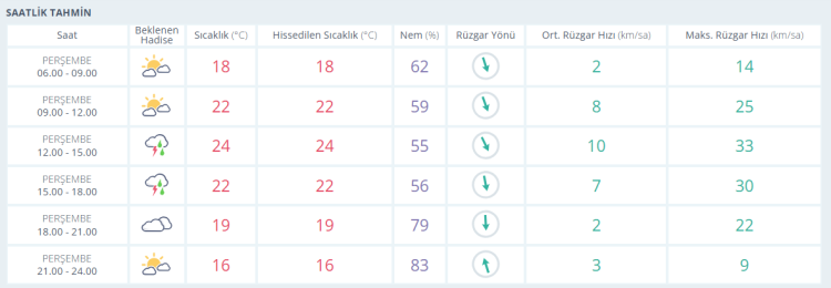 29 Mayıs Perşembe: Parçalı bulutlu. En düşük sıcaklık 12, en yüksek sıcaklık 26 derece olacak.