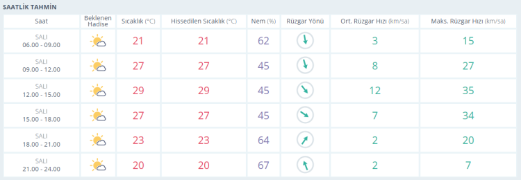 6 Haziran Cuma: Sıcak. En düşük sıcaklık 16, en yüksek sıcaklık 35 derece olacak.