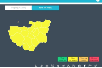 Bu gece 00.00'dan başlayıp yarın 18.00'e kadar sürmesi beklenen meteorolojik hadise için şu uyarılara yer verildi: "Kuvvetli sağanak yağış bekleniyor. Yağışların zamanla 1000 metre üzeri yüksek kesimlerde kar yağışı şeklinde olacağı tahmin ediliyor. Kuvvetli yağışlarla birlikte su baskını, ulaşımda aksamalar gibi olumsuzluklara karşı dikkatli ve tedbirli olunması gerekmektedir."
