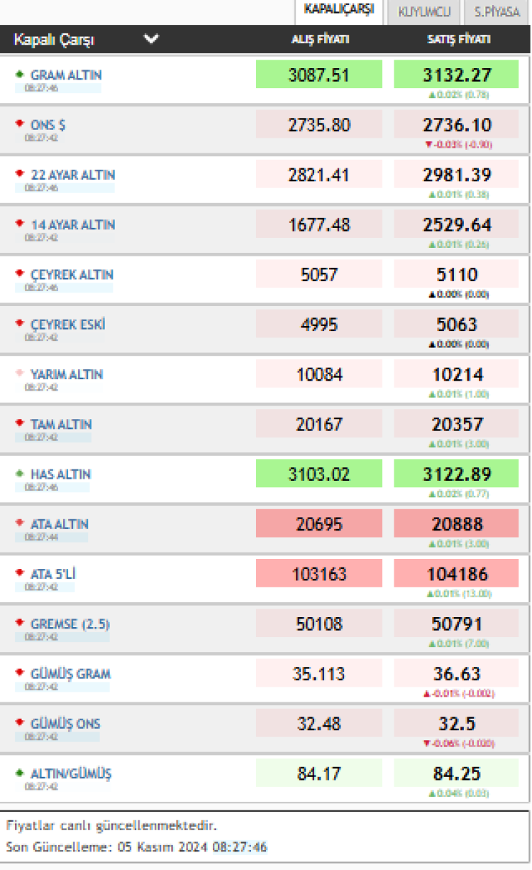 BURSA KAPALI ÇARŞI ALTIN FİYATLARI | FİYATLARDA DALGALANMA SÜRÜYOR! 5 KASIM 2024