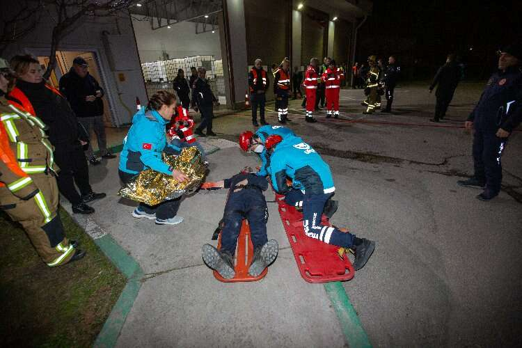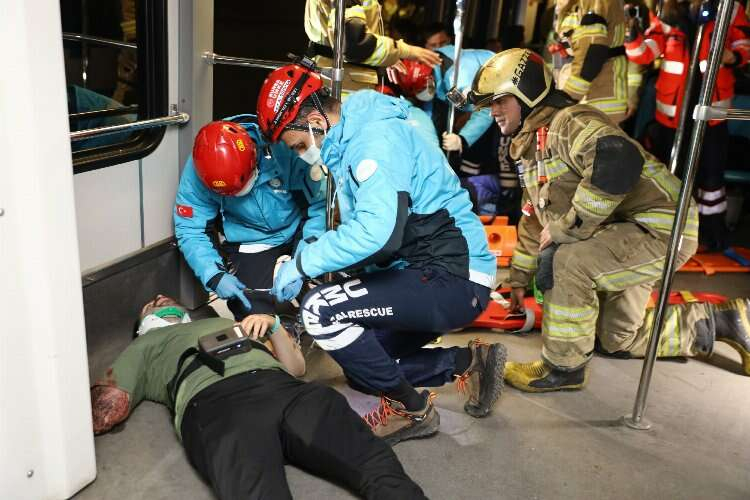 Bursa metrosunda gerçekleştirilen uluslararası tatbikat nefes kesti. Senaryo gereği metro, Nilüfer İstasyonu ile Odunluk İstasyonu arasındaki tünelden geçerken, deprem meydana geldi ve metro vagonu raylardan çıktı. Metrodaki yolculardan 21’i yaralanırken, olay yerine gelen ekipler, olaya son teknolojik donanımlarla müdahale etti.