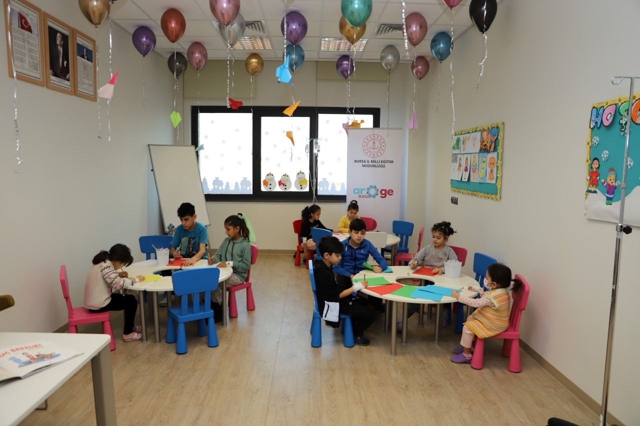 Bursa’da Dörtçelik Çocuk Hastanesi, Bursa Uludağ Üniversitesi Tıp Fakültesi Hastanesi, Şevket Yılmaz Eğitim ve Araştırma Hastanesi ve Bursa Şehir Hastanesinde bulunan “Hastane Sınıfları” ile çocuklar tedavi gördükleri süre içerisinde eğitim ve öğretimlerine devam ediyor.