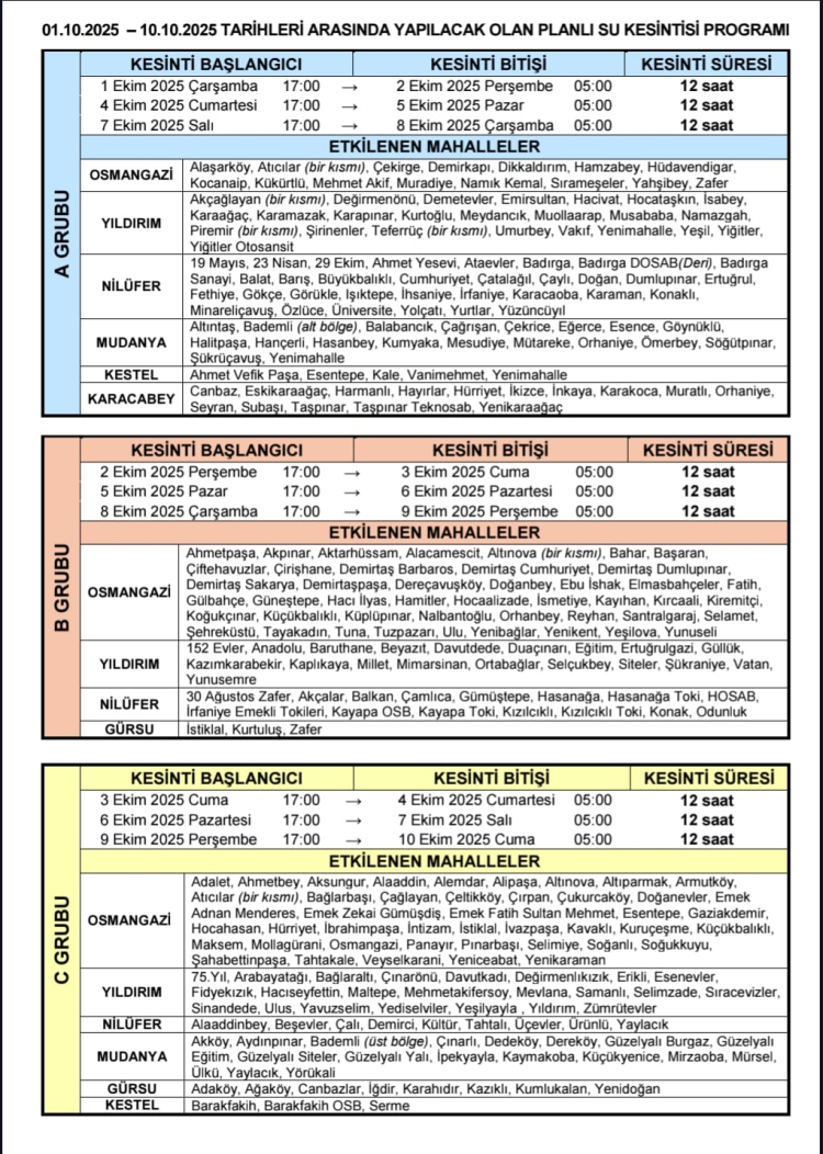 BURSA SU KESİNTİSİ | KESİNTİ NERELERDE VE NE ZAMAN? 6 EKİM 2025…