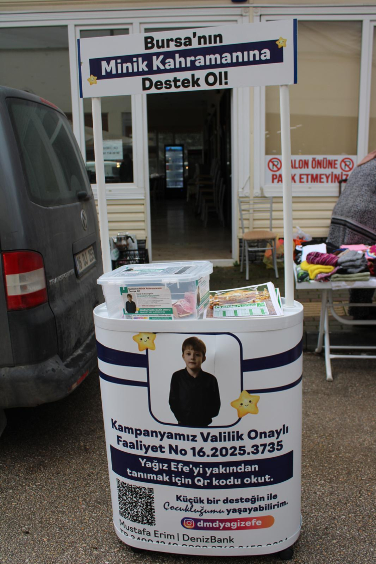 Bursa’da Duchenne Musküler Distrofi (DMD) hastalığıyla mücadele eden 8 yaşındaki Yağız Efe Erim için valilik onaylı yardım kampanyası sürüyor. Mavinin Kızları Platformu tarafından düzenlenen kermesle hem tedaviye destek sağlandı hem de toplumsal farkındalık çağrısı yapıldı.