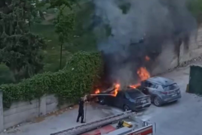Bursa'nın Yıldırım ilçesinde park halinde bulunan bir otomobil, henüz belirlenemeyen bir nedenle alevlere teslim oldu. Hızla büyüyen yangın, bitişiğinde bulunan başka bir otomobile de sıçradı.