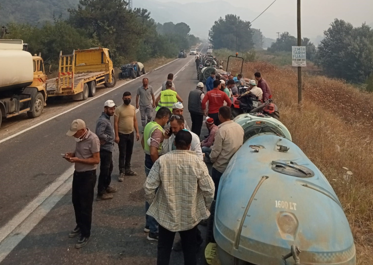 İZNİKLİ ÇİFTÇİLER YANGINA SU TANKERLERİYLE MÜDAHALE ETTİ