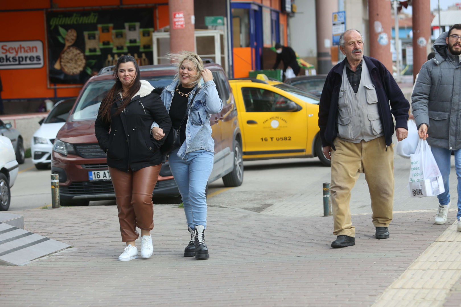 Bursa’da etkili olan lodos, vatandaşlara zor anlar yaşattı. Kimi vatandaşlar yürümekte zorluk çekerken, kimileri ise kendi imkanlarıyla lodostan korunmayı çalıştı.