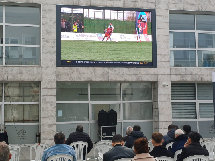 Meydana kurulan dev ekranda takımlarına kenetlenen taraftarlar, maçın başlamasıyla birlikte büyük bir coşku yarattı. Karşılaşmanın her kritik anında heyecan doruğa çıkarken, gollerde ve kurtarışlarda meydan adeta inledi.