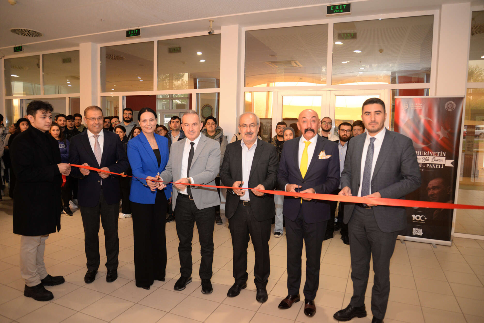 Türkiye Cumhuriyeti’nin 100 yıllık serüvenine fotoğraf, resim ve belgelerle ışık tutan sergi Prof. Dr. M. Mete Cengiz Kültür Merkezi’nde açıldı. Açılış törenine Büyükşehir Belediyesi Başkan Vekili Fethi Yıldız, BUÜ Rektör Yardımcısı Prof. Dr. Cafer Çiftçi, akademik ve idari personel ile öğrenciler katıldı.