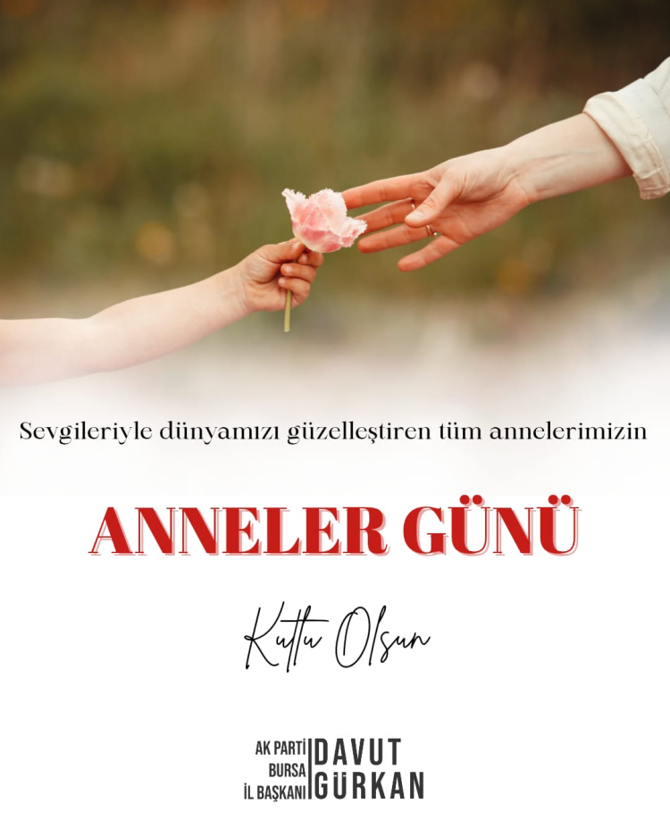 AK Parti Bursa İl Başkanı Davut Gürkan, Anneler Günü ile ilgili sosyal medya hesabından mesaj paylaştı.