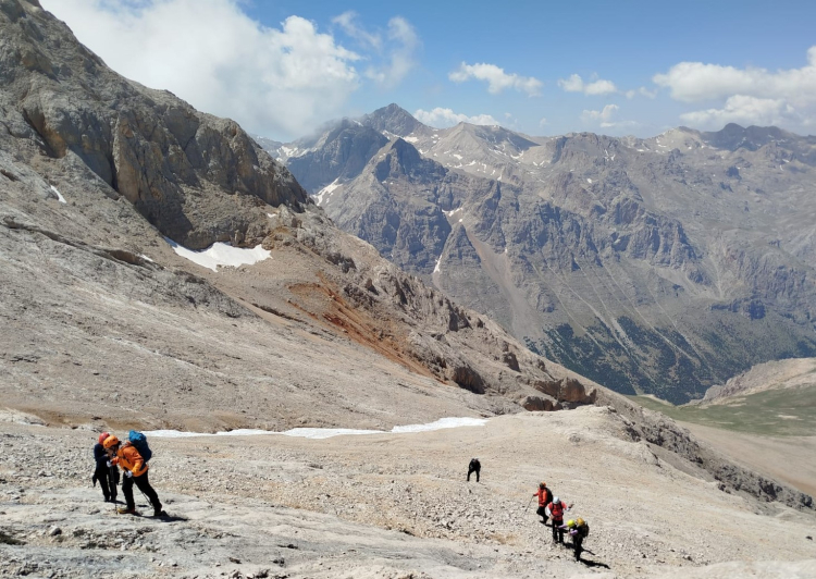 Ancak zorlu macera burada bitmedi. Gecenin ilerleyen saatlerinde, saat 04.00’te bu kez Eznevit zirvesine doğru hareket eden ekip, batı kulvarından dik ve teknik açıdan zorlu bir rotada tırmanış gerçekleştirdi. Tüm ekip eksiksiz şekilde zirveye ulaşırken, dönüş yolculuğu ise 3 saatlik zorlu bir “çarşak inişi” ile tamamlandı.