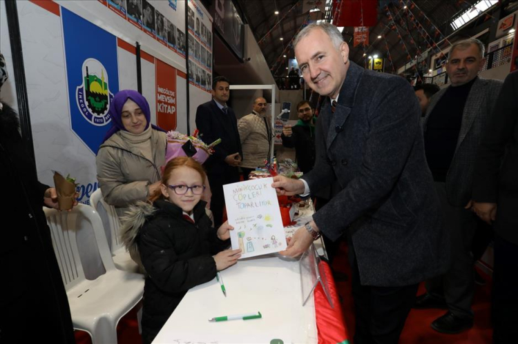 İnegöl Belediye Başkanı Alper Taban da Pazartesi günü fuar alanını ziyaret etti. Başkan Taban, öğrencilerle sohbet ederken, kitap stantlarını tek tek gezdi ve yazarlarla bir araya geldi. Başkan Taban, özellikle yerel yazarlar köşesinde dikkat çeken bir isme, 8 yaşındaki minik yazar Aslıhan Karakurt’a ilgi gösterdi. Karakurt, “Minik Çocuk Çöpleri Toparlıyor” adlı dergisinin kapağını kendisi tasarlayarak, Başkan Taban’a imzalayıp hediye etti.
