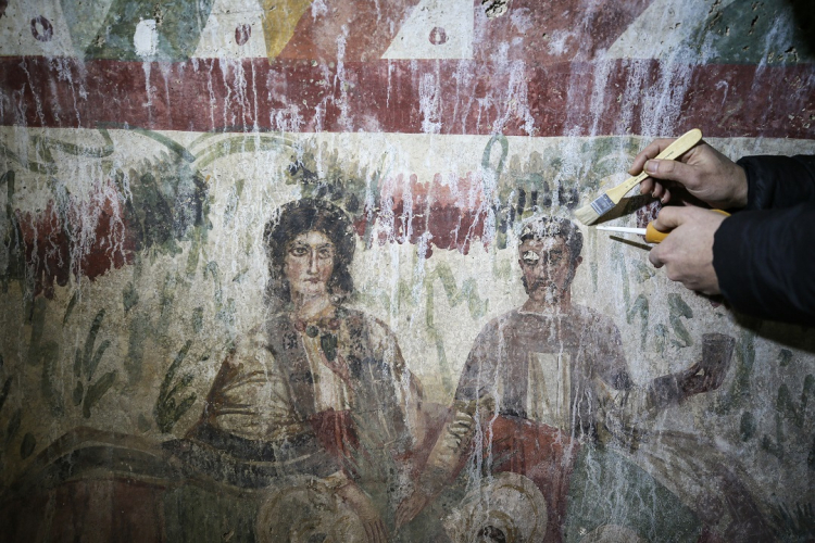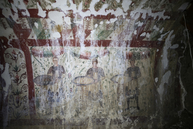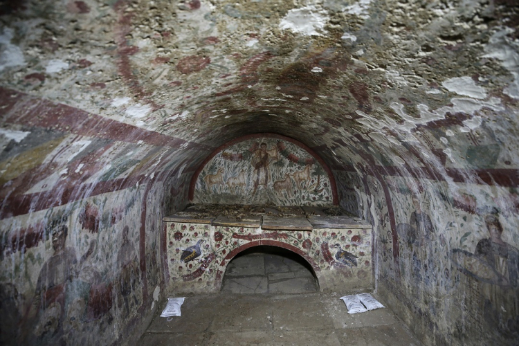 Kazı sırasında bir hipojede (yer altı tonozlu mezar odası) 3. yüzyıla tarihlenen fresk ortaya çıkarıldı. Freskte Hazreti İsa, çoban olarak omuzunda bir, sağında ve solunda ikişer keçiyle tasvir edildi. Hipojenin diğer duvarlarında mezar sahipleri, uşaklar, cennet tasvirleri, çiçekler ve kuşlar resmediliyor.