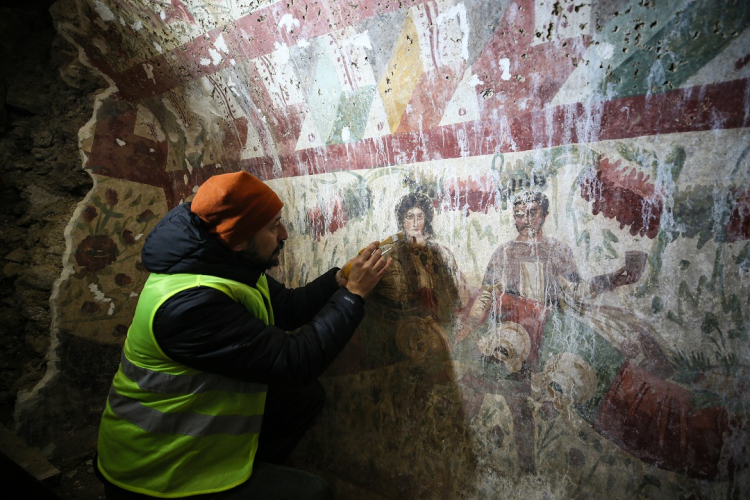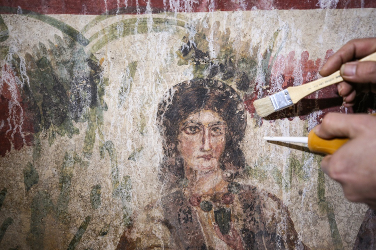 Bursa’nın İznik ilçesinde Roma ve Erken Bizans dönemine ait Hisardere nekropolünde yürütülen kazılarda, 3. yüzyıla tarihlendirilen “Çoban İsa” freski gün yüzüne çıkarıldı. Arkeologlar, freskin zarar görmeden korunması için titizlikle çalışıyor.