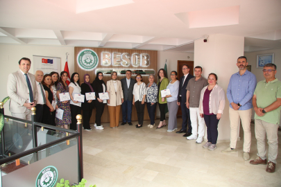 Yıldırım Belediye Başkan Yardımcısı Ayşe Ertan, İMEP 2 Program Koordinatörü Aişe Akpınar, Saha Koordinatörü Sezgin Akpınar, İMEP Bölge Koordinatörü Aydın Türkoğlu, Bursa Demir ve Madeni İşler Sanatkarları Esnaf Odası Başkanı İzzet Güven ve eğitimlerini tamamlayan kadın kursiyerler BESOB’a anlamlı bir ziyaret gerçekleştirdi. Heyeti, BESOB Yönetim Kurulu Başkanı Fahrettin Bilgit karşıladı.