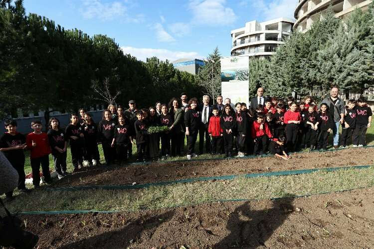 Nilüfer Belediye Başkanı Turgay Erdem, Vahide Aktuğ Ortaokulu öğrencileriyle bir araya gelerek okul bahçesinde öğrencilerle birlikte çilek ve marul fidesi dikti.