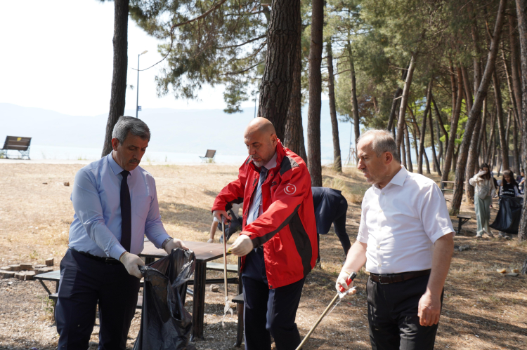 Göl Çamlık alanında yapılan çevre temizliği ve farkındalık etkinliğine, Orhangazi Kaymakamı Zafer Karamehmetoğlu, İlçe Milli Eğitim Müdürü Erol Şanlıtürk ve Orhangazi Belediyesi ekipleri de katılım sağladı.