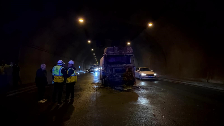 İstanbul-İzmir otoyolu Orhangazi mevkiinde, İstanbul istikametinde seyreden bir su tankeri, tünel içinde aniden alev aldı.